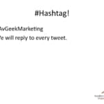 We promise to reply to any hashtag that uses, or any Tweet or Facebook share, or anything else that uses this hashtag and we will reply to every Tweet. So that hashtag is #AvGeekMarketing. All right. So now our motto is “No random acts of marketing!” We want to know what you’re doing and why.