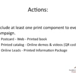 Paula Williams: Exactly, right, okay, so what does this boil down to? What does this mean to you? We think that you should include at least one print component in every campaign and we do this all the time. We try to include at least one print component, and here’s some examples on how you can do that.