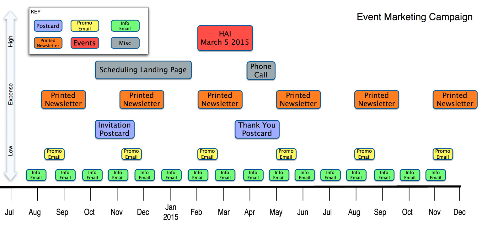Used correctly, you can set up an email, postcard, or other marketing piece once, set up a delivery schedule, and it will be sent to the right people at the right time correctly for years with no further effort on your part.