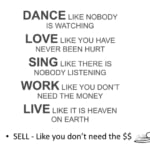 Paula Williams: Okay, and you’ve probably all seen the poem, dance like nobody’s watching, love like you’ve never been hurt, sing like there’s nobody listening. Work like you don’t need the money, and live like it’s Heaven on Earth. We could add a line to that. Sell like you don’t need the money.
