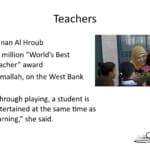 So, he’s a very good salesperson. Not only of ideas, but also of companies. So, engineers and inventors, really, really helps to have good sales skills, Teachers, Hunan Al Rub, the world’s best teacher according to the group that decides such things. Some world group on education, they have a $1 million teacher of the year, world’s best teacher award that they hand out.