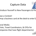 How do you find a great list for an FBO? Prospective customers of the types that we talked about? The first one is you need to capture data, so you want to introduce yourself to new passengers and pilots as they come and go and make sure that there’s a way for them to, for you to interact with them and they’re not just transient traffic.