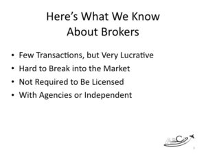Paula Williams: Right, exactly. So this is not about how to buy and sell airplanes. This is how to market your services as a broker. So there are really two things that you need to do. One is to get listings, and the other is to sell airplanes, and those are both marketing tasks, and those are the only things we’re going to talk about today. Right?