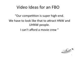 Paula Williams: Okay, so now the first misconception about video marketing is that you need a full video crew for everything you do. And especially for FBO’s because kind of the, the standard has been set by a signature and some other folks who do these beautiful studio productions of an airplane pulling in and the red carpet going out