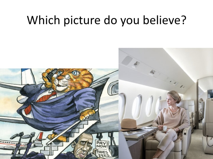 Right. Okay. So the people that you’re most likely to run into as prospective customers are somewhere on the fence. They are being hounded by their relatives and by other people and things that are going on in the news. And they are maybe feeling a little squishy about using private aviation, or booking a charter flight, or buying a jet or buying a 172. Where you start is what do we agree on, right? And if you can start with something that you agree on, it’s a whole lot easier to back up into, you know what, this is fine, right? You can turn anybody into a full throated capitalist if you start from the point of view of what do we agree on. You’re not going to get anywhere if you start by saying, you’re wrong and I’m right. Okay?