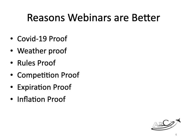 Many aviation business owners, and sales and marketing execs, would like to host a webinar. Since conferences and events in the spring and summer of 2020 are getting cancelled or postponed, webinars are a fantastic way to reach potential customers.