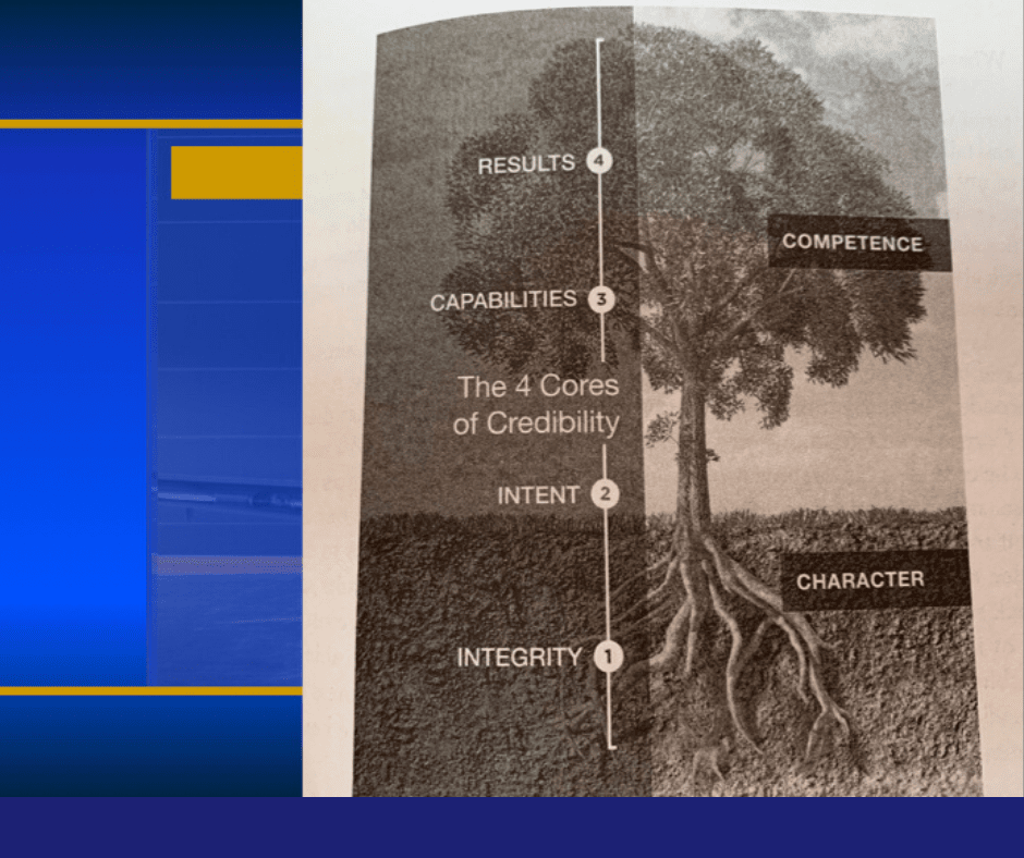 It was.. Let's see. Integrity, intent, capabilities, and results. So integrity and intent is who you are and then your capabilities and your results is what you produce. To Debbie's point, I think this is one of the most important ideas of this book, is that trust isn't built on how they make me feel or how they look, or how trustworthy they smell or what have you, but it's actually built on what the hell they do, what they can actually get done.