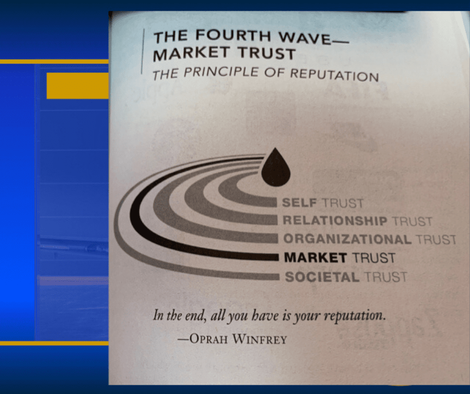 Decades, yes. And so my point would be how trust comes from… They have the four corners of credibility. It starts with yourself and it goes out in…. Actually, there's five waves. Self, relationship, organizational, market, and societal. So it starts with being honest to yourself and then building relationships out. I thought that-