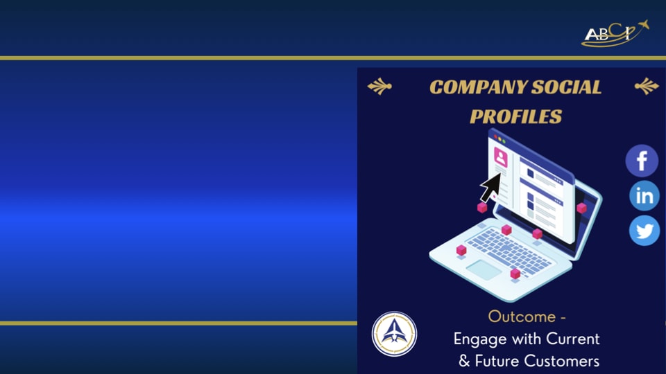 We also put together your company’s social profiles on all of those social media. Now, in spite of everything I just said about social media, they are a great way to find audiences that are already there about a particular topic. So, if you are into agricultural aviation in Indiana or the VIP aviation in Los Angeles or the fracking world of the Midwest or whatever it is that you are into, there are groups of people that are already assembled on Facebook or Instagram or YouTube or some other social media that you have access to by just putting together these profiles and making yourself known to those groups.