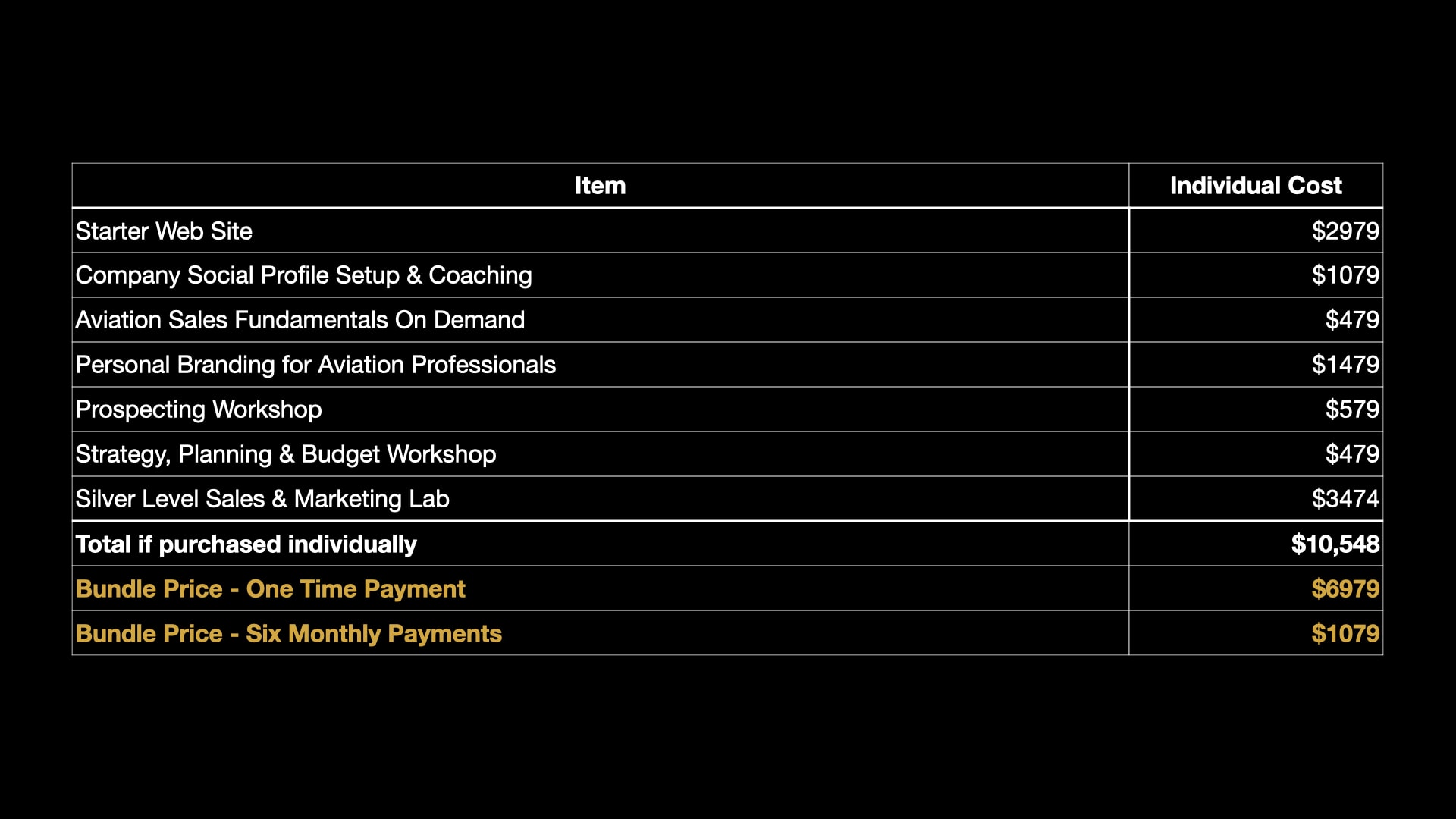 Paula: Okay. So, we put together a bundle of services for startups and side hustles in the aviation industry. What it includes is a number of things that we wish that we had when we started our businesses, some of which worked and some of which didn’t. When they didn’t work out, it was usually because we didn’t have enough customers and usually because we weren’t doing enough sales and marketing at the time.
