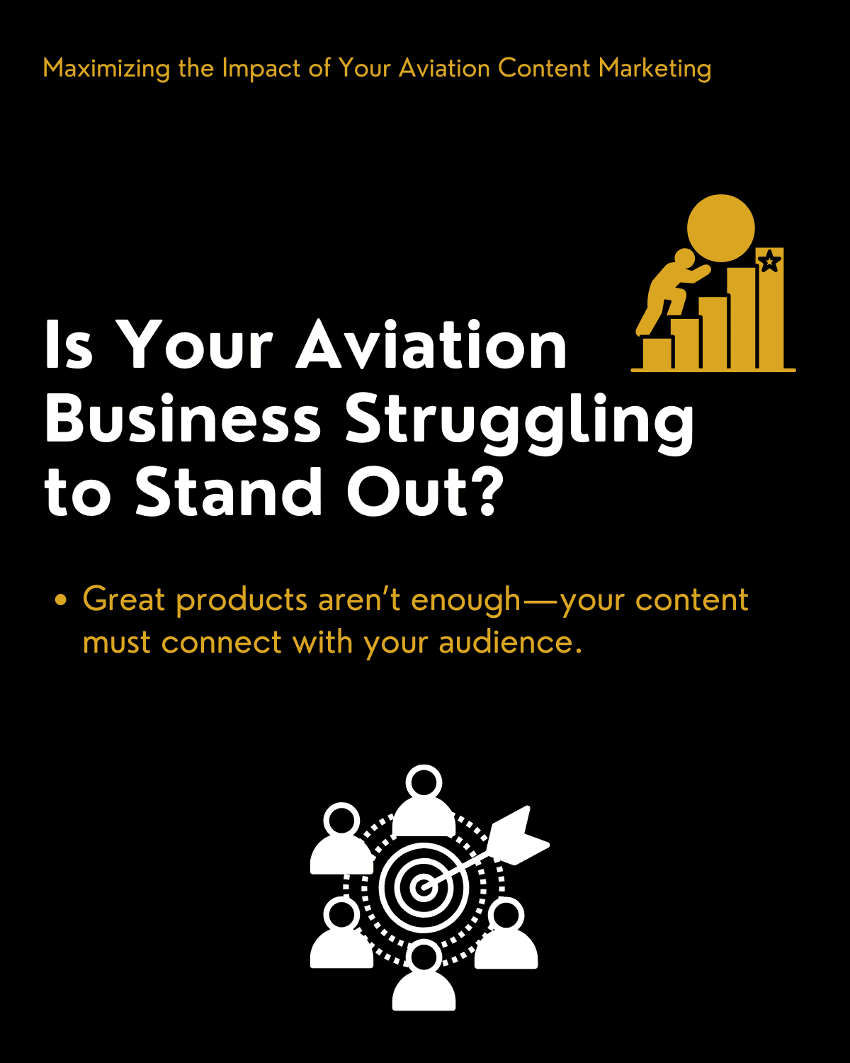 A successful aviation content marketing approach requires both technical expertise and a dynamic strategy that adapts to industry changes and ever-changing audience expectations. With the right strategies, your aviation business can consistently stand out from the competition, build meaningful connections with your audience, and achieve key business goals. But in a world of fast-paced information, with potential clients exposed to thousands of messages daily, how do you ensure your content breaks through the noise?