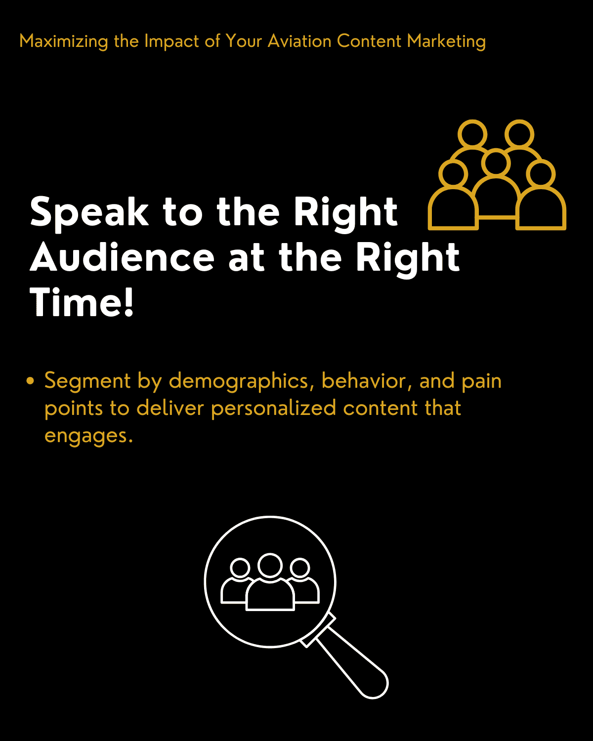 Segment by Industry Needs and Pain Points: The aviation industry has a broad range of sectors, from commercial airlines and private aviation to defense contractors and MRO providers. Each segment of the industry has unique challenges, and understanding these specific pain points allows you to create content that directly addresses them.