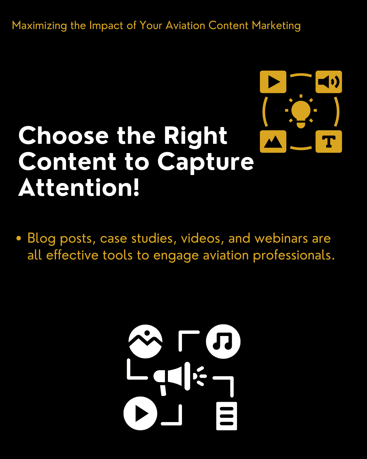 Choosing the right type of content can make all the difference in capturing your audience’s attention. Here’s a breakdown of effective content types for aviation content marketing: