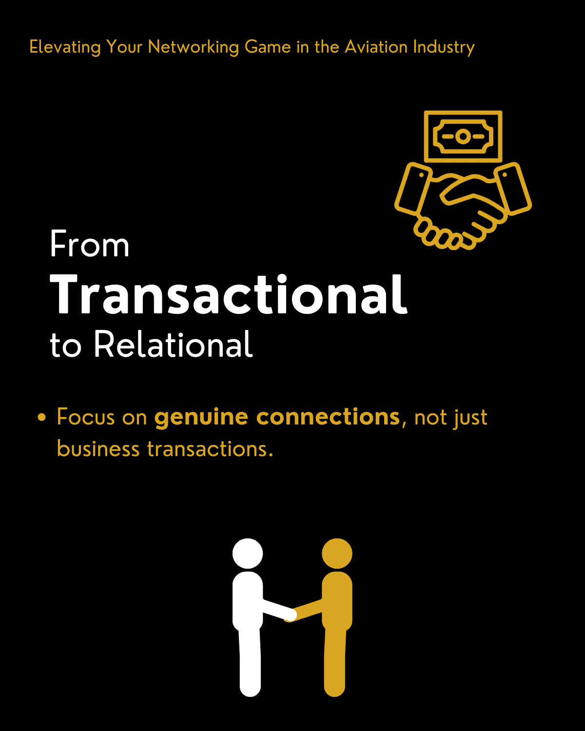 The first step to successful networking in the aviation industry is a mental shift. Many aviation professionals focus on immediate gains, collecting business cards or increasing LinkedIn connections. While there’s nothing wrong with pursuing opportunities and expanding your network, this transactional mindset often results in surface-level relationships that offer little value over time.